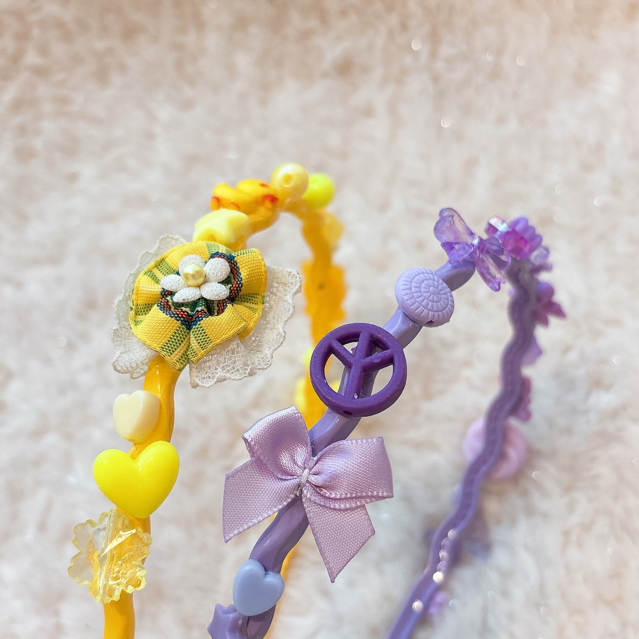 キッズ ヘアバンド ゴールド カチューシャ 誕生日 撮影 かわいい プレゼント ギフト カラフル シュール ユニーク 個性的 推し活 黄色 イエロー 紫 パープル