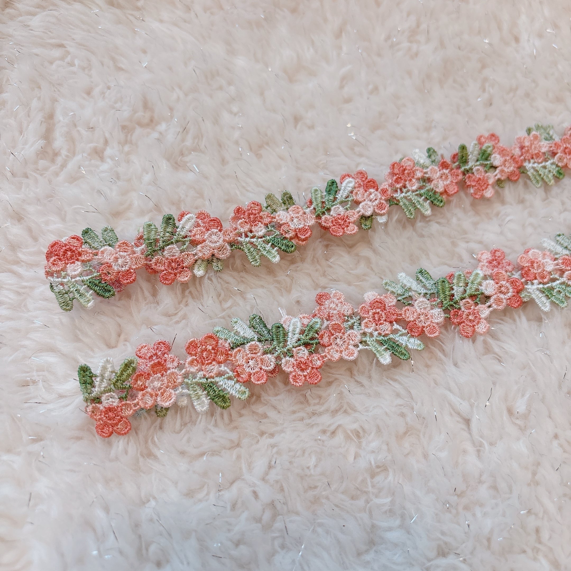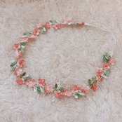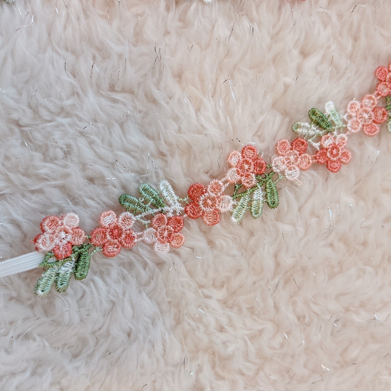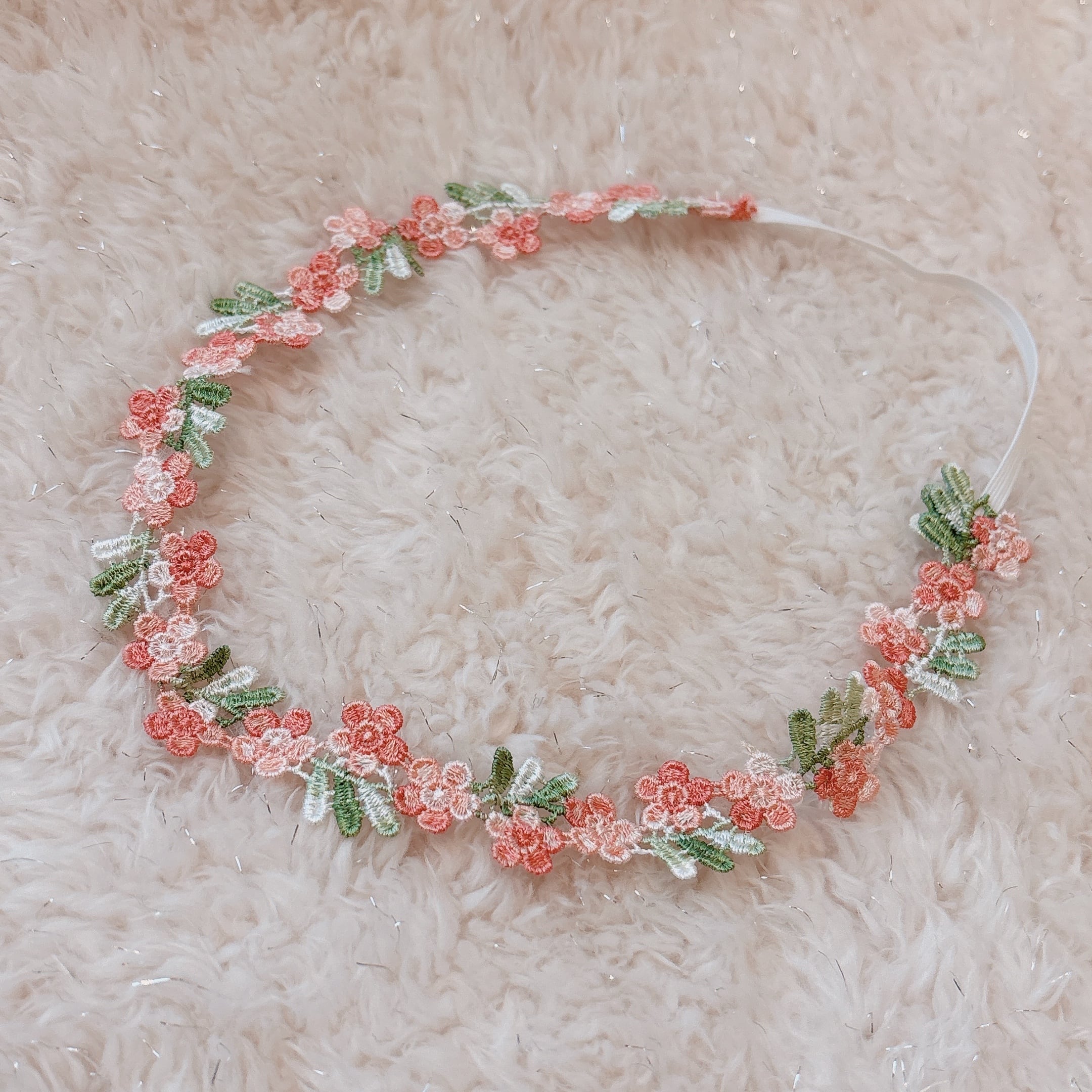 コーラルピンクのお花の刺繍ヘアバンド【ベビー・キッズ】