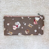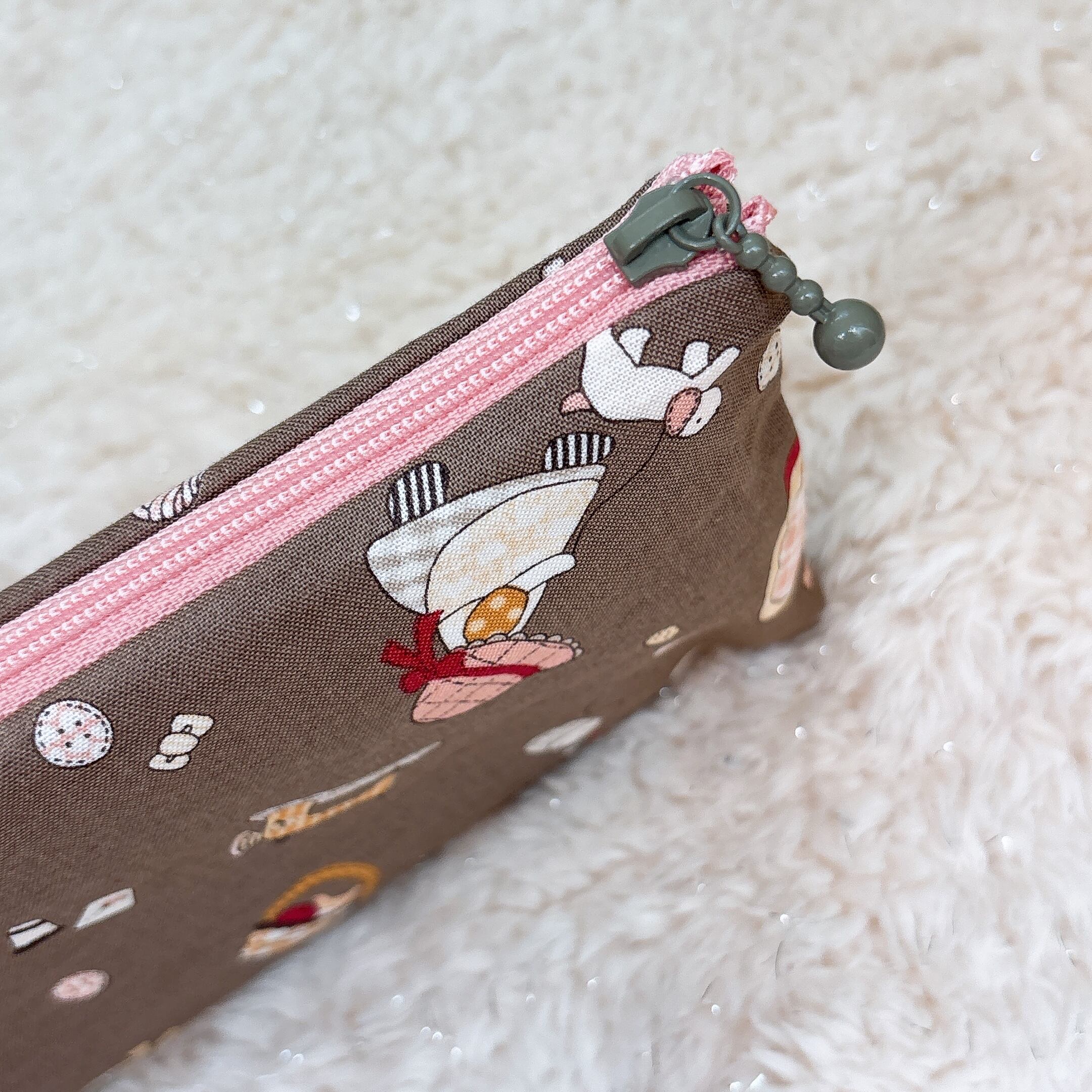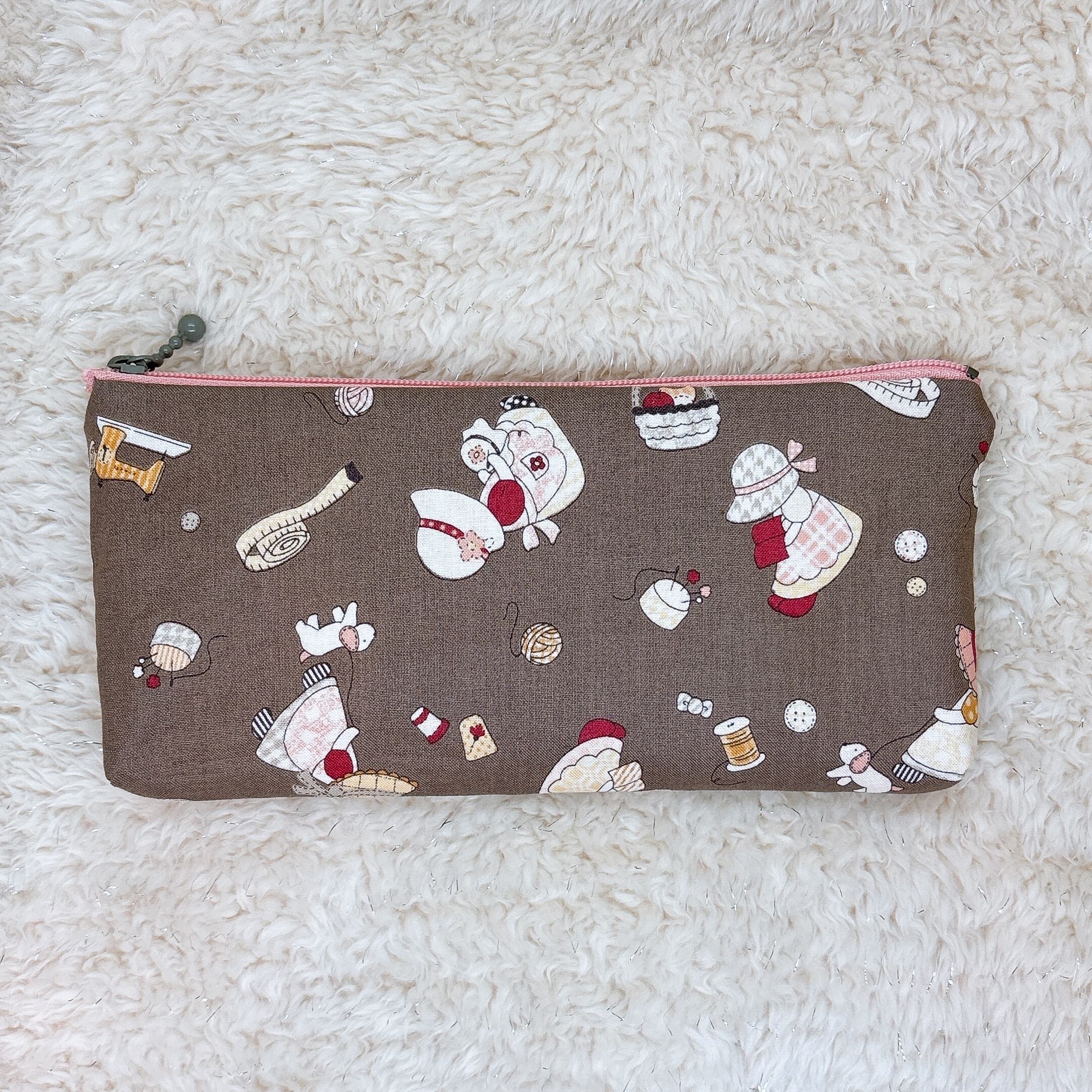 ファスナーペンケース ファスナーポーチ マチあり 綿 ペンケース レトロ 昭和レトロ くすみカラー 大正モダン レトロポップ 水玉 ドット 女の子 裁縫 手芸 ミシン