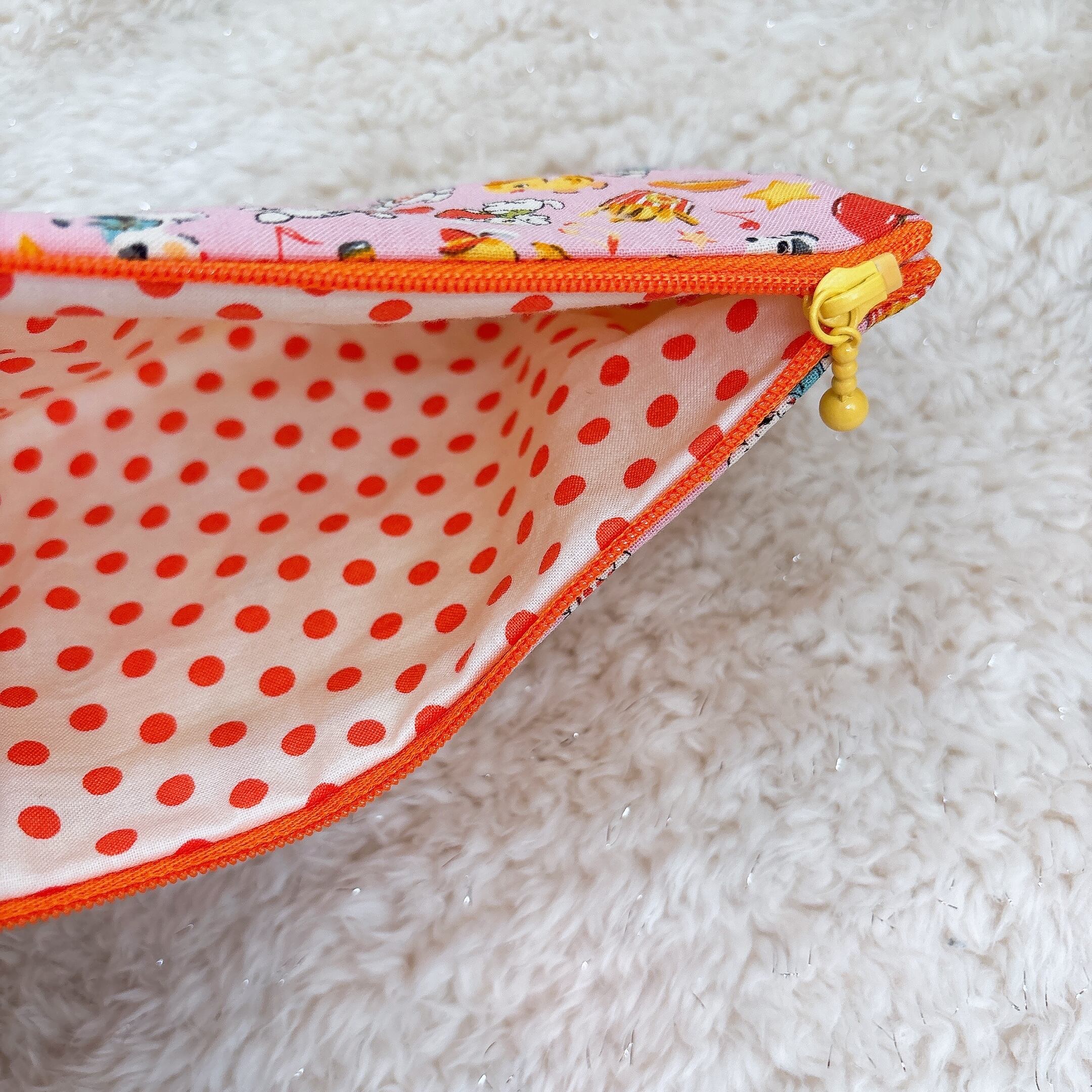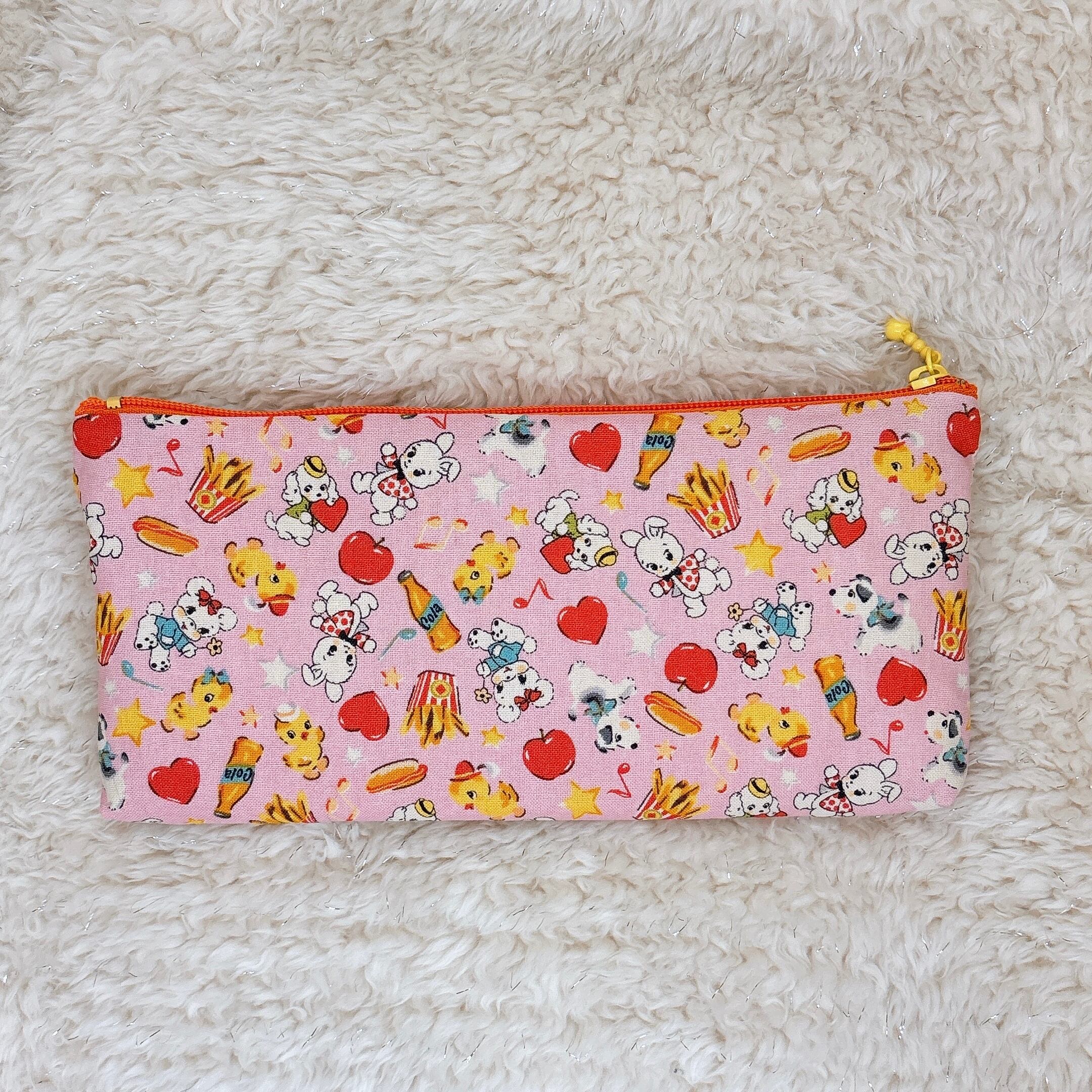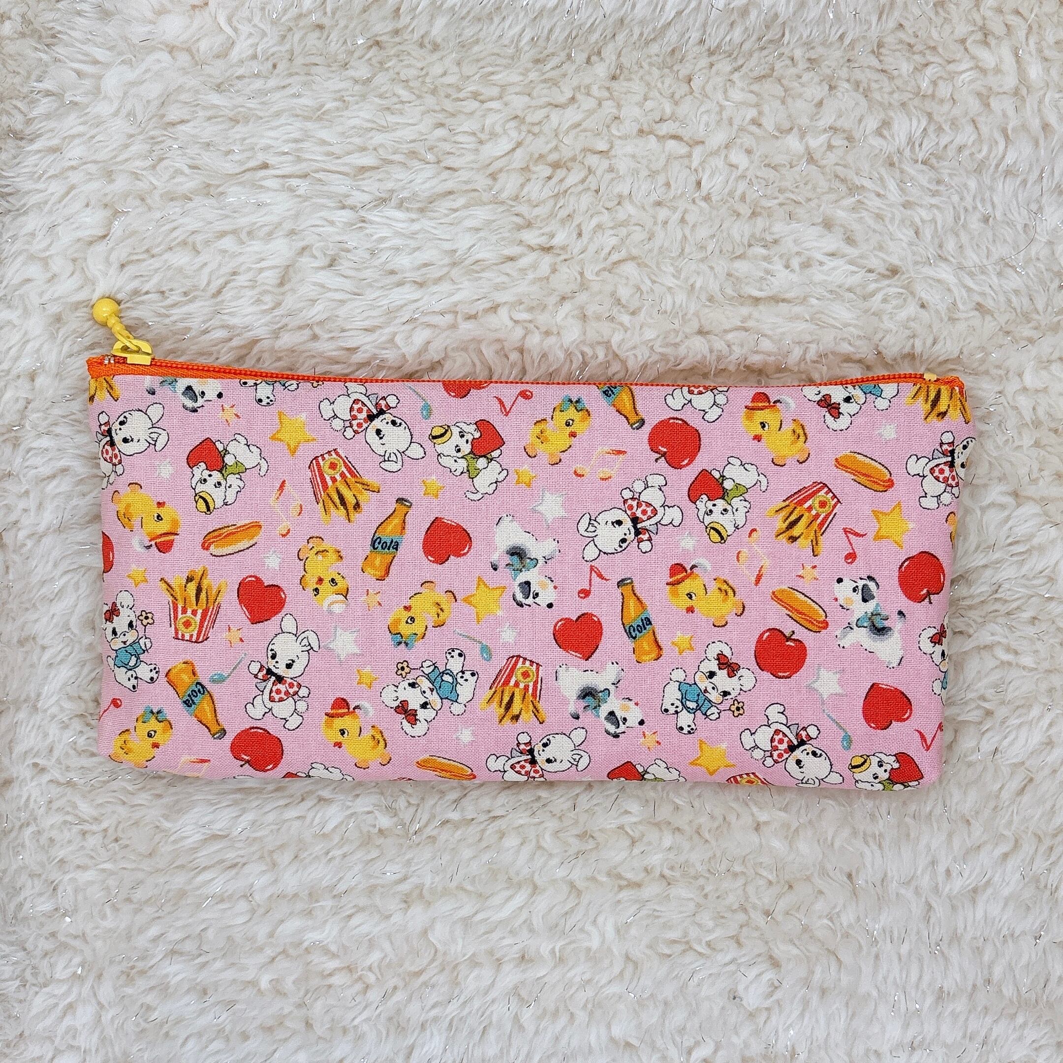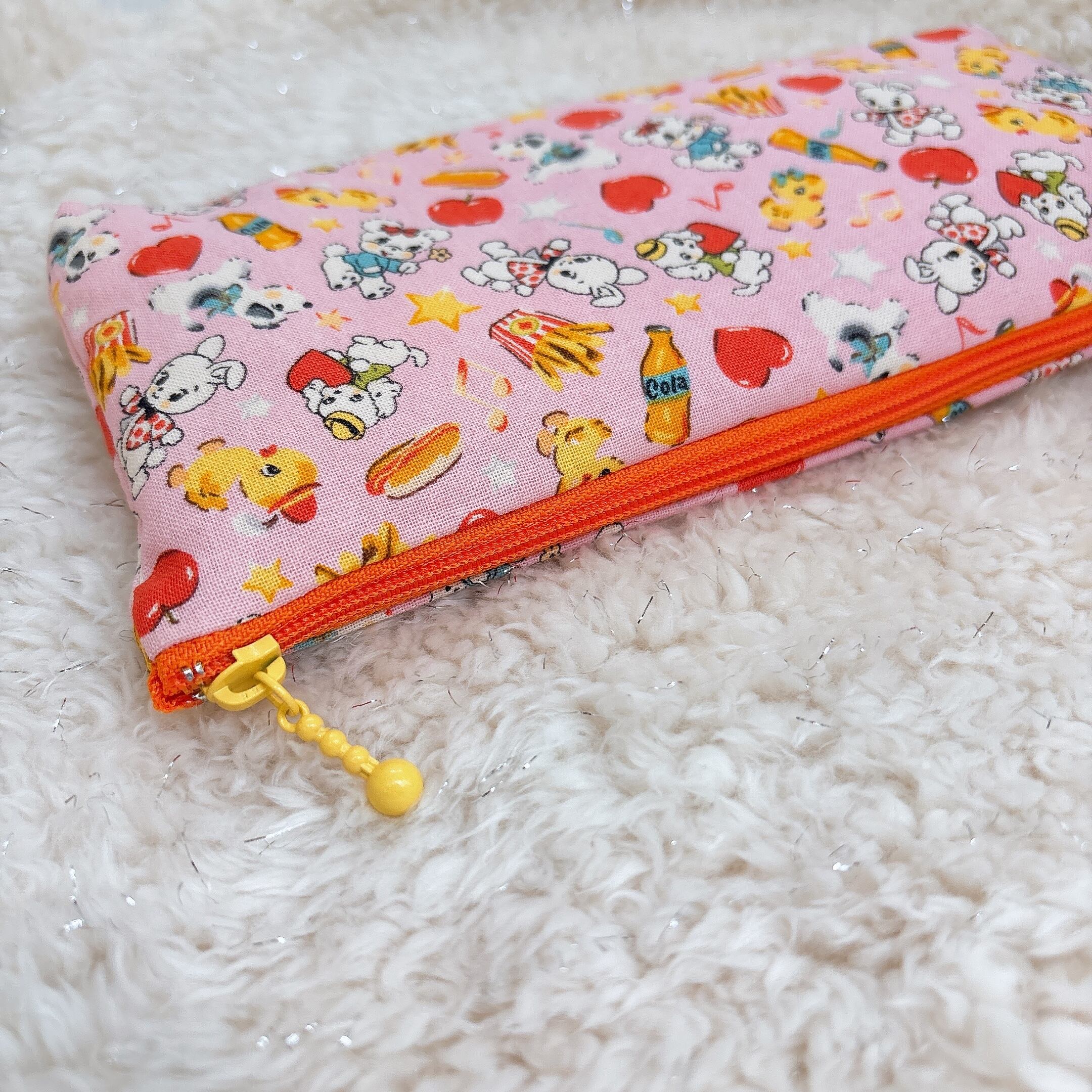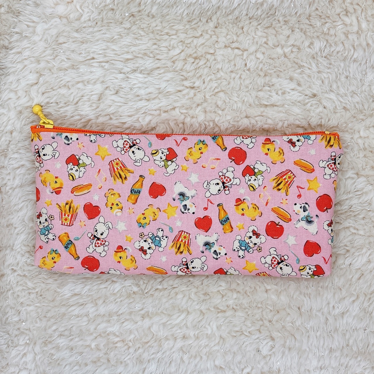 ファスナーペンケース ファスナーポーチ マチあり 綿 ペンケース レトロ 昭和レトロ くすみカラー 大正モダン レトロポップ 水玉 ドット アニマル 動物 うさぎ 犬 小鳥 りんご