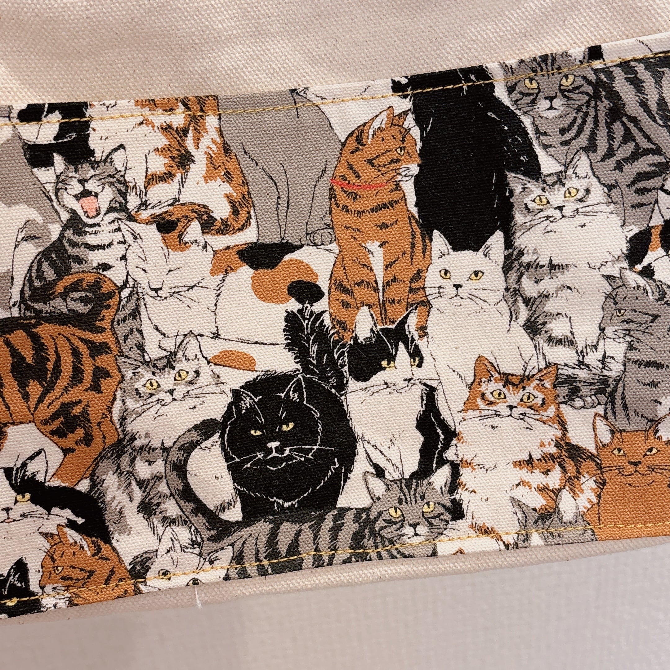 さまざまな表情の猫たちが描かれたポケットは、見ているだけで楽しくなるデザイン*