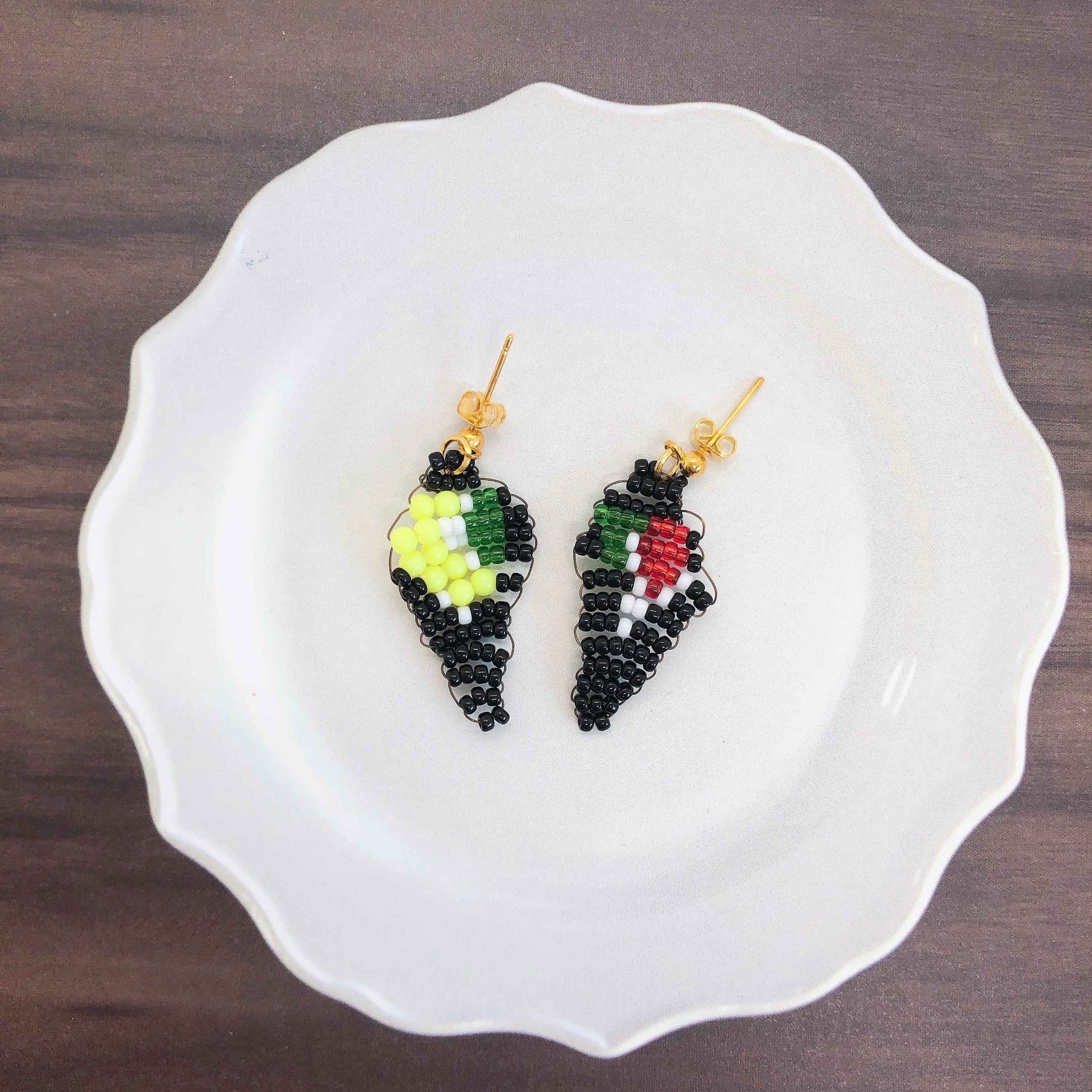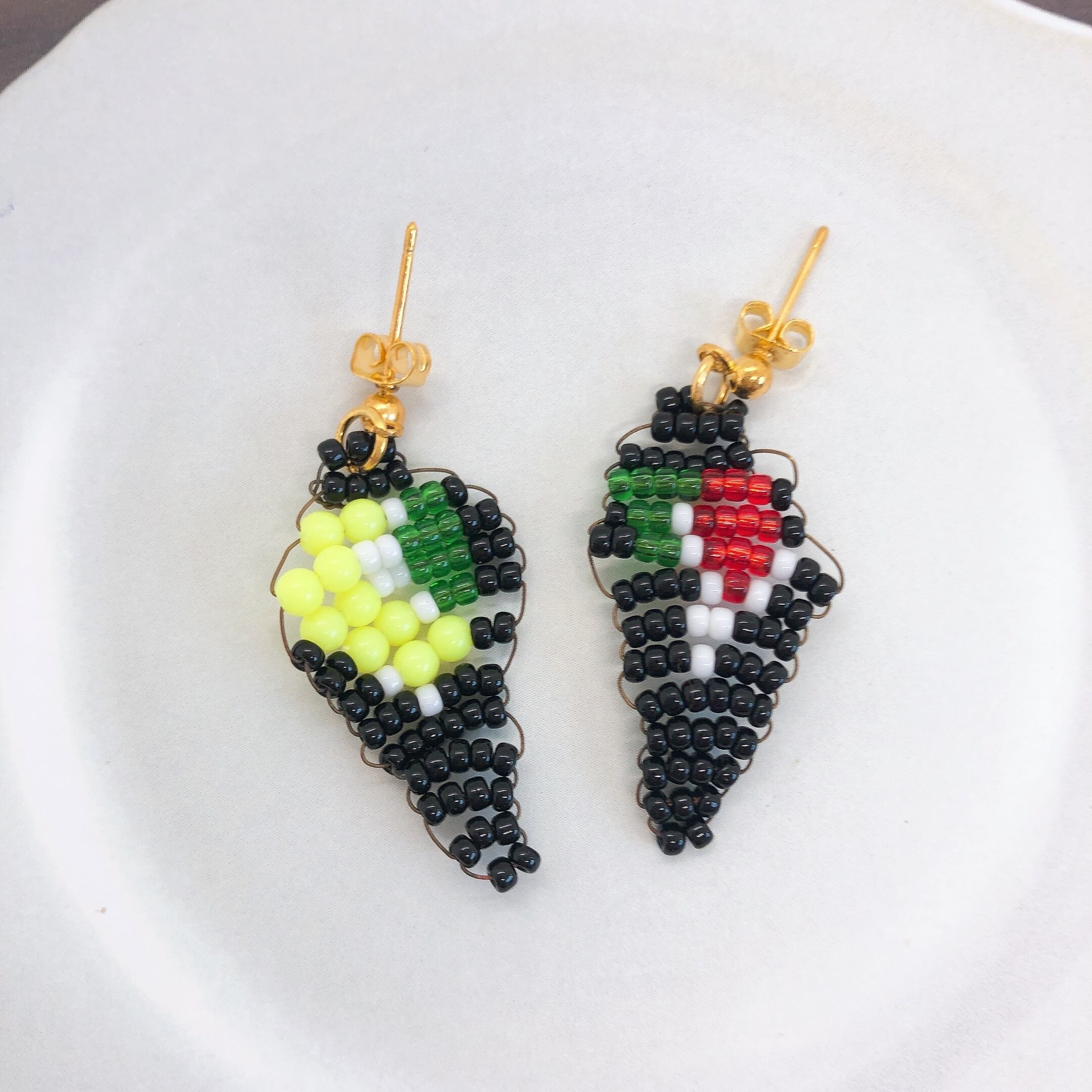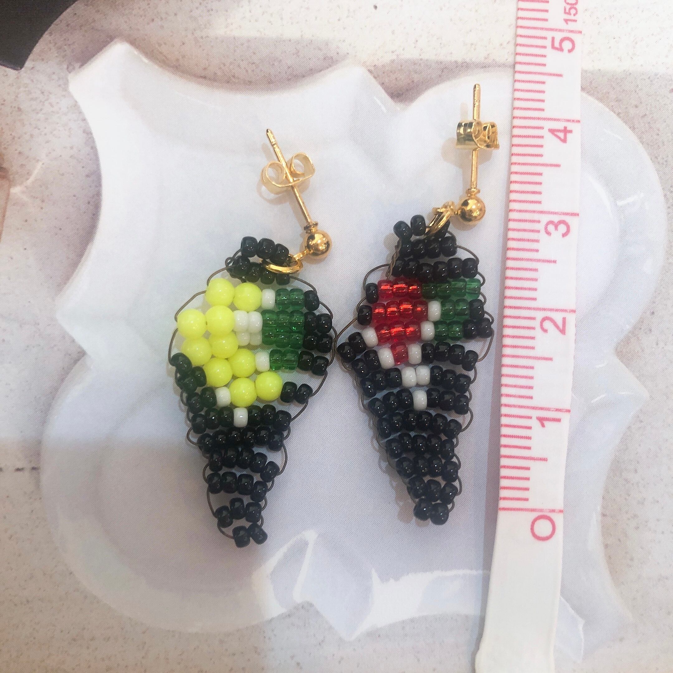ビーズで作った巻き寿司をピアスにしました。