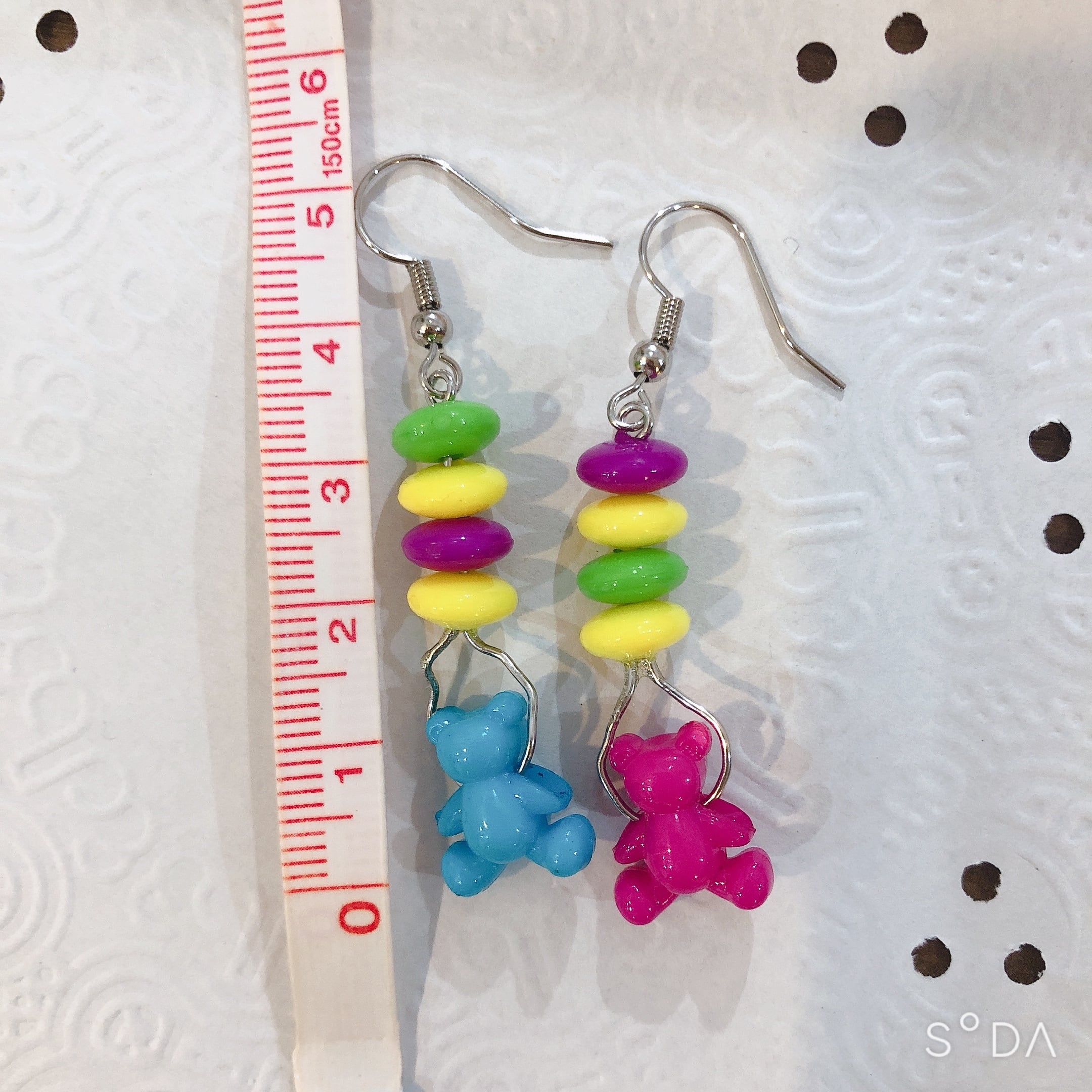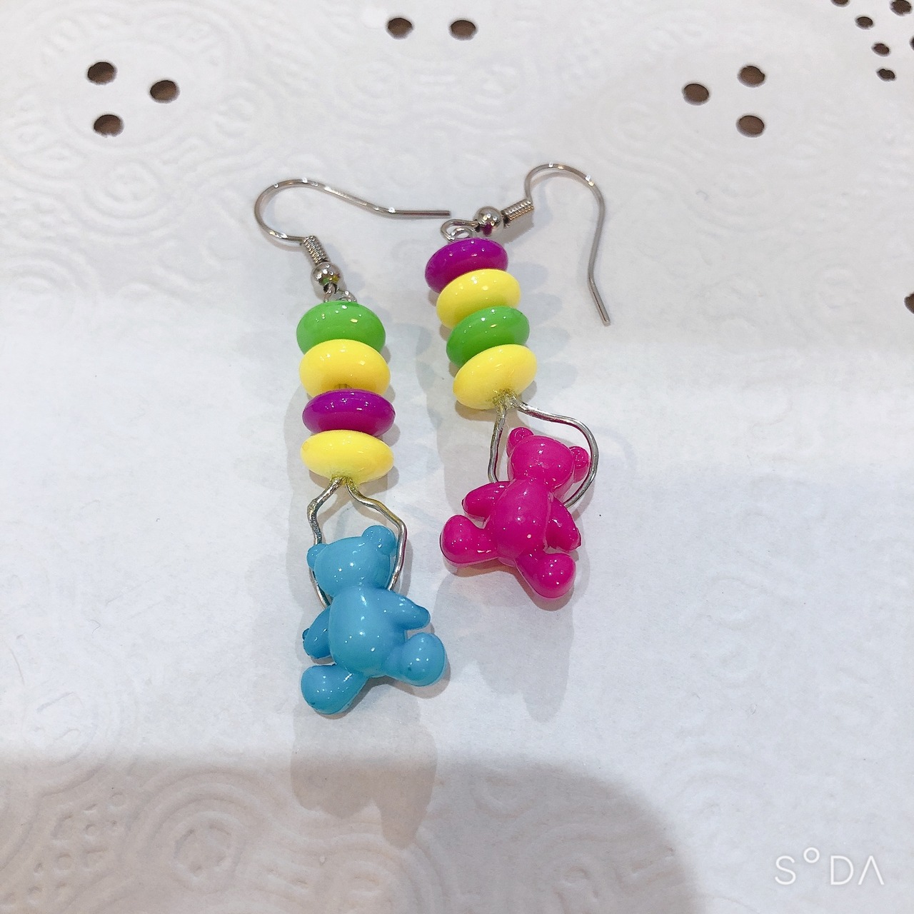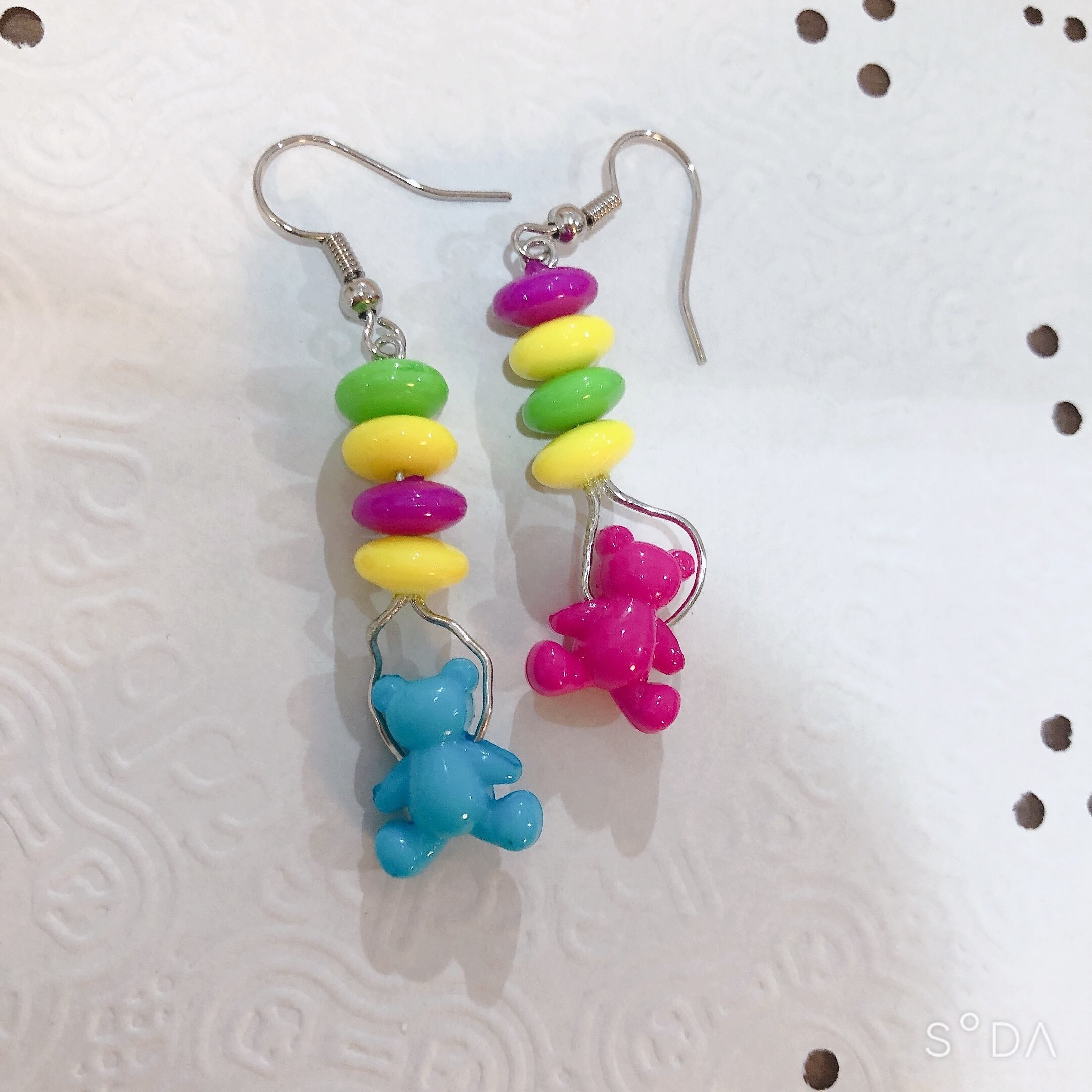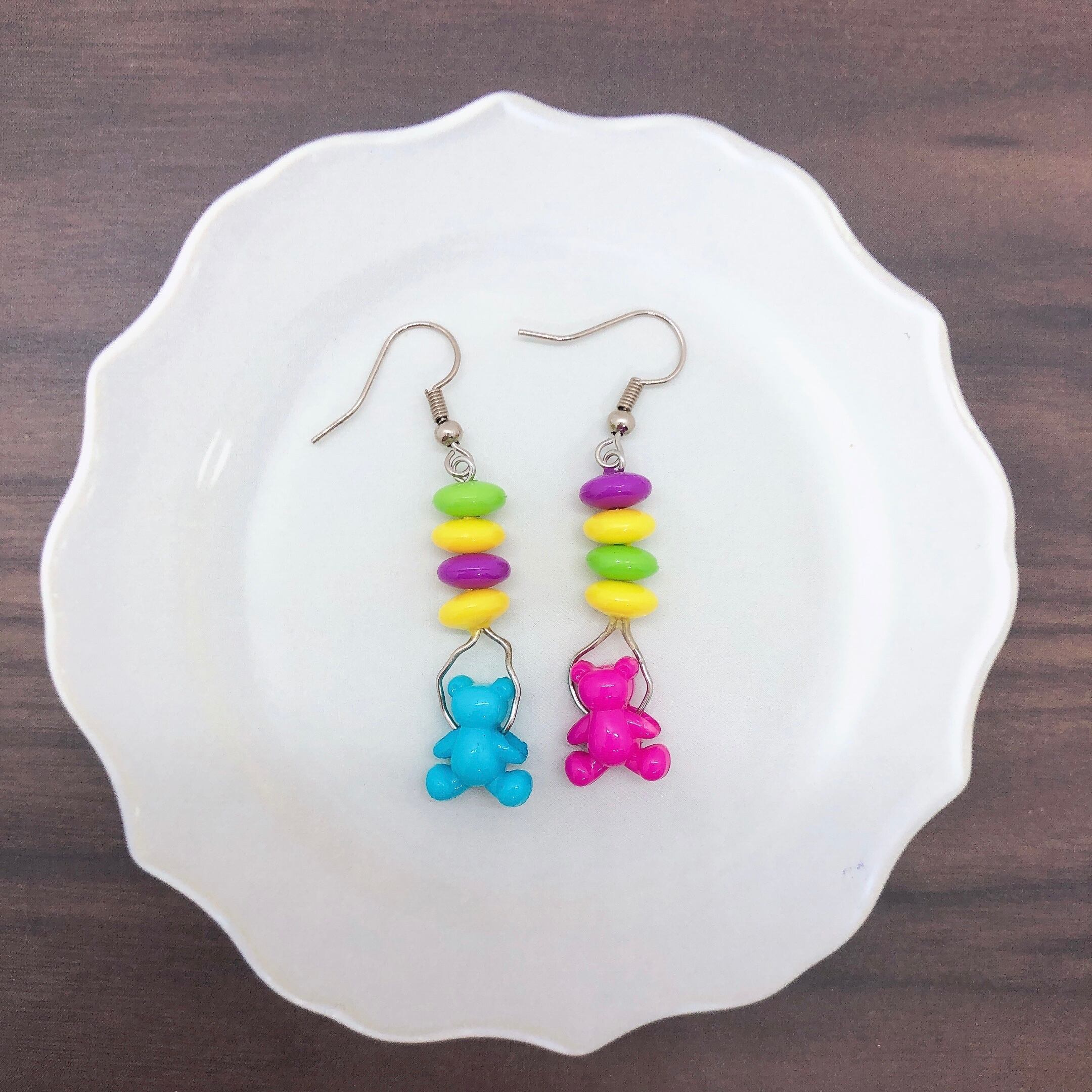 ピアス イヤリング 昭和レトロ レトロポップ カラフル くま 水色 ピンク ビーズ プラスチック 原宿