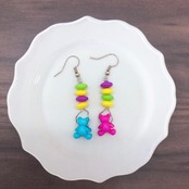 レトロポップな熊のパーツを使って、ピアスを作りました。
