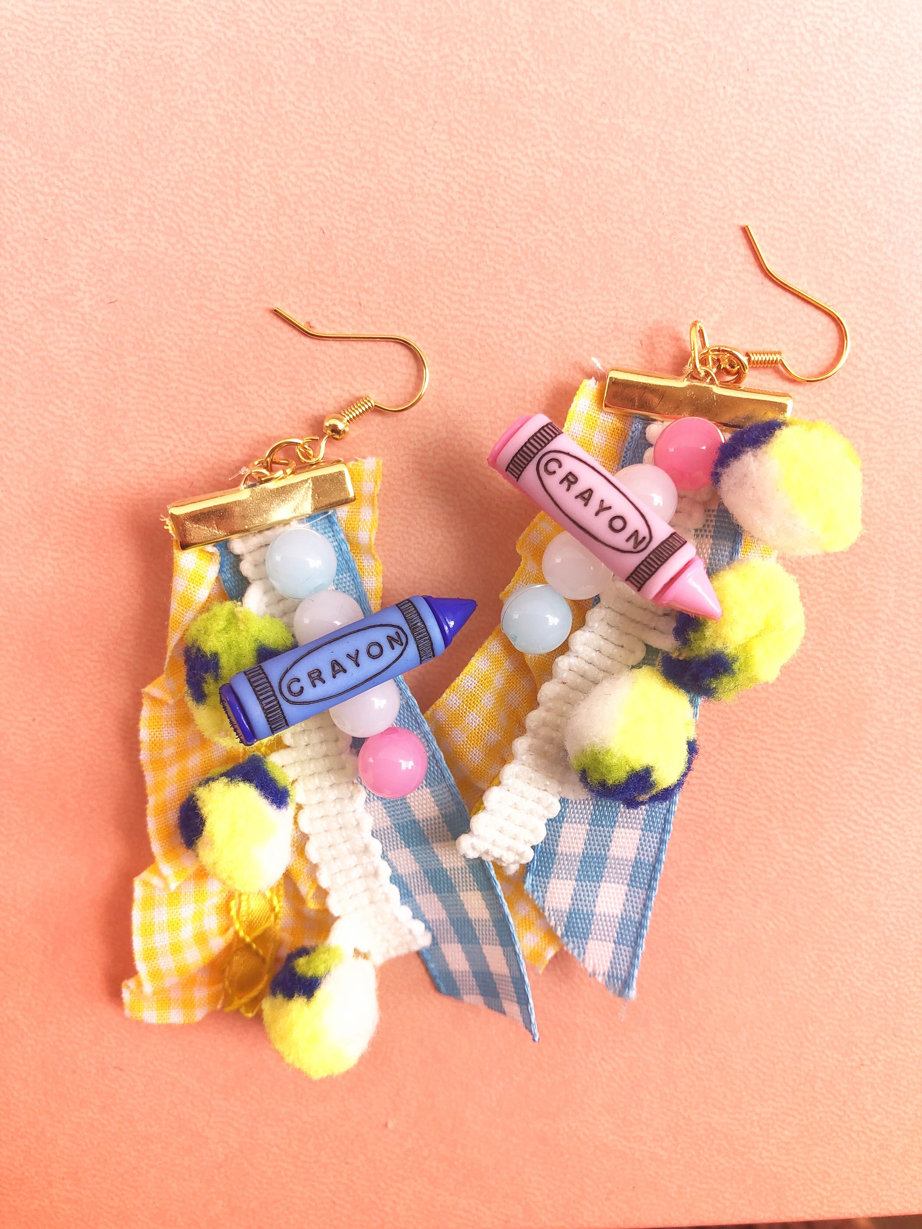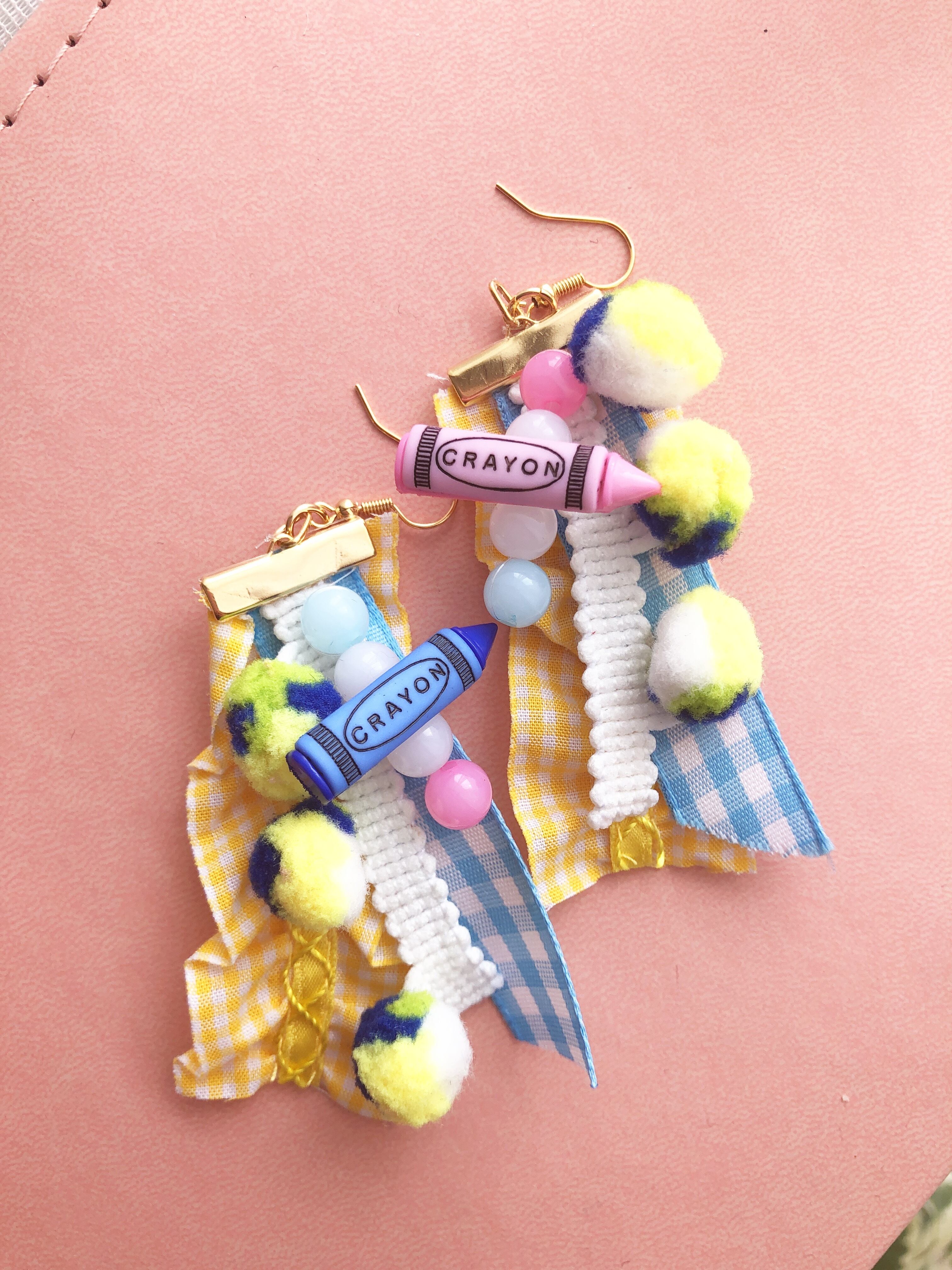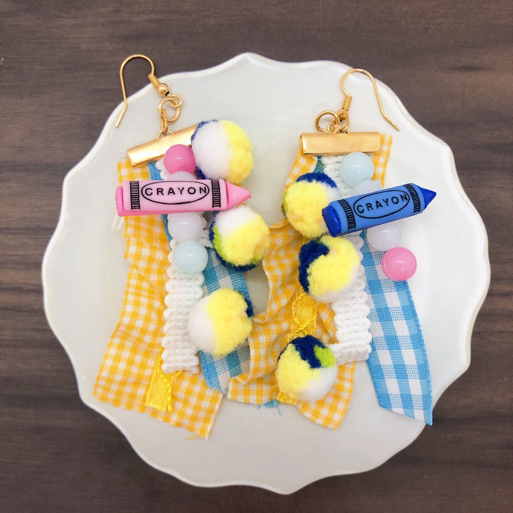 昭和レトロ レトロポップ 個性的 個性派 クレヨン 青 ブルー ピンク リボン カラフル 原宿系