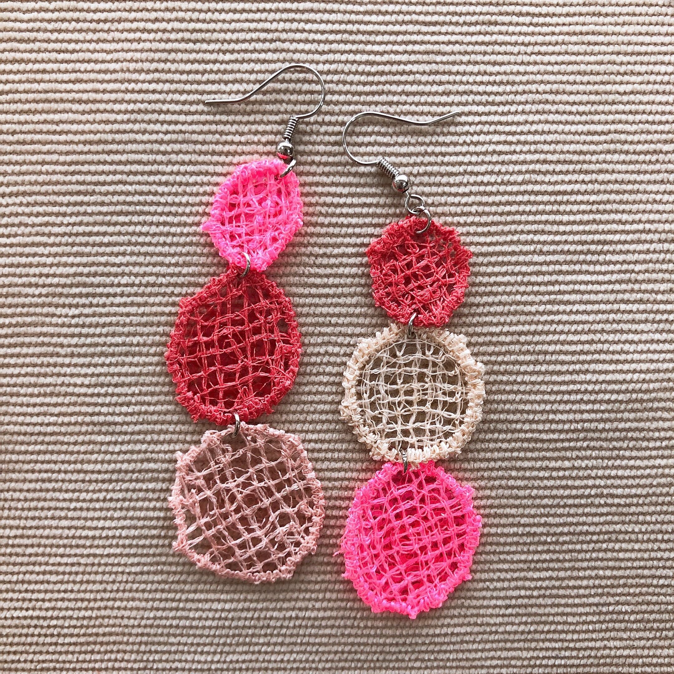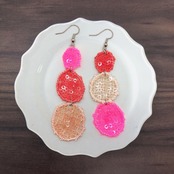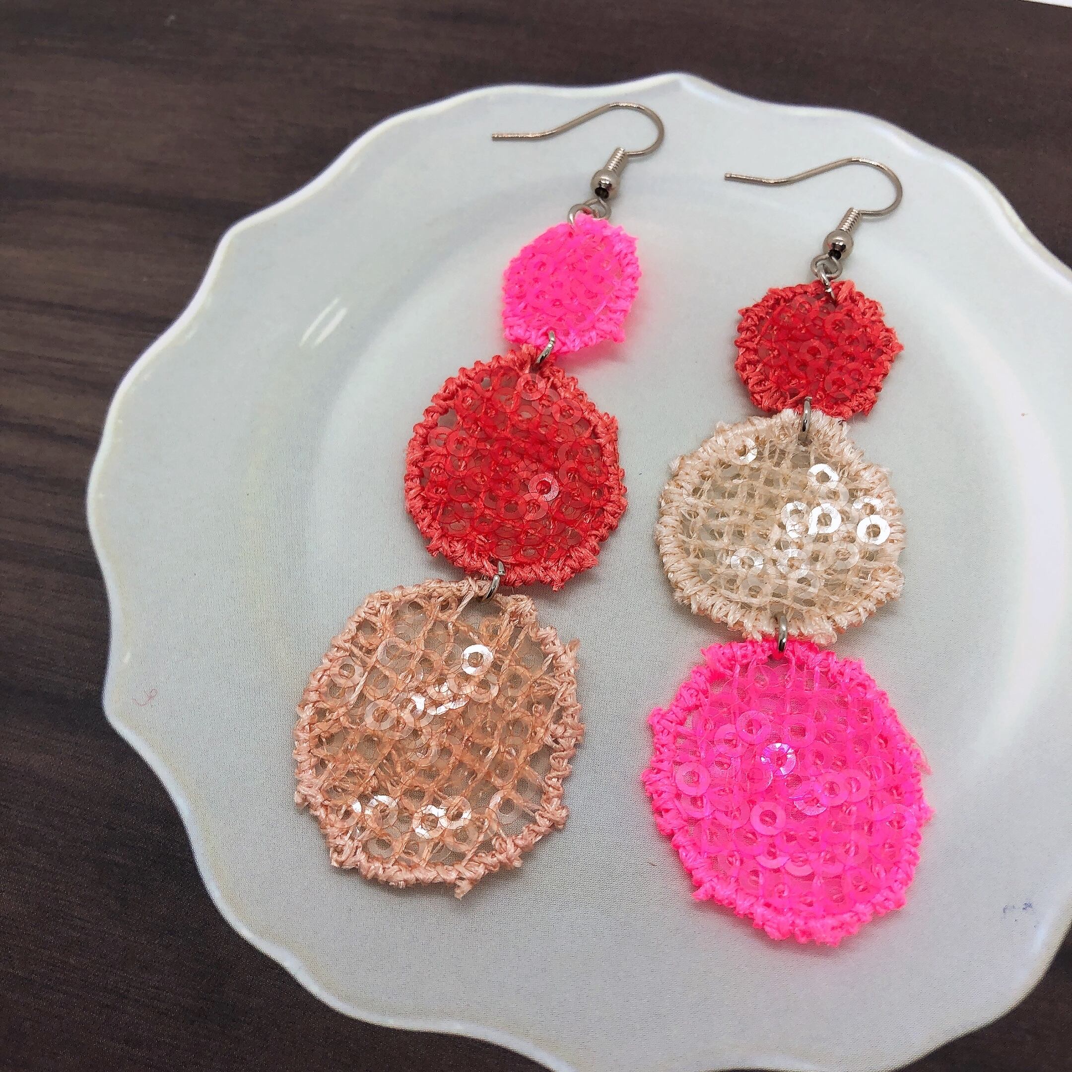 スパンコールを使った丸いモチーフでピアスを作りました。