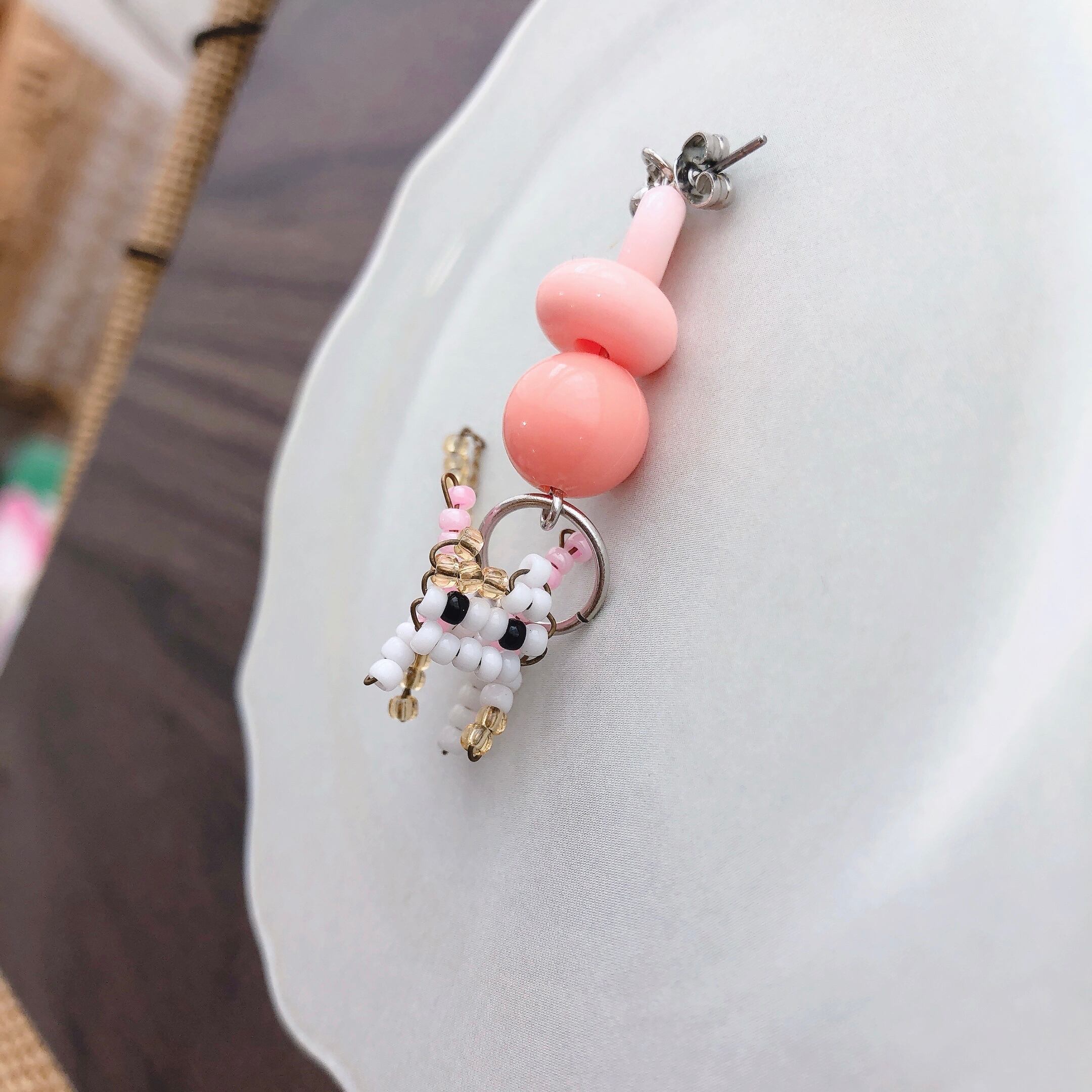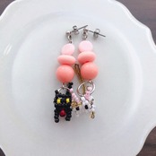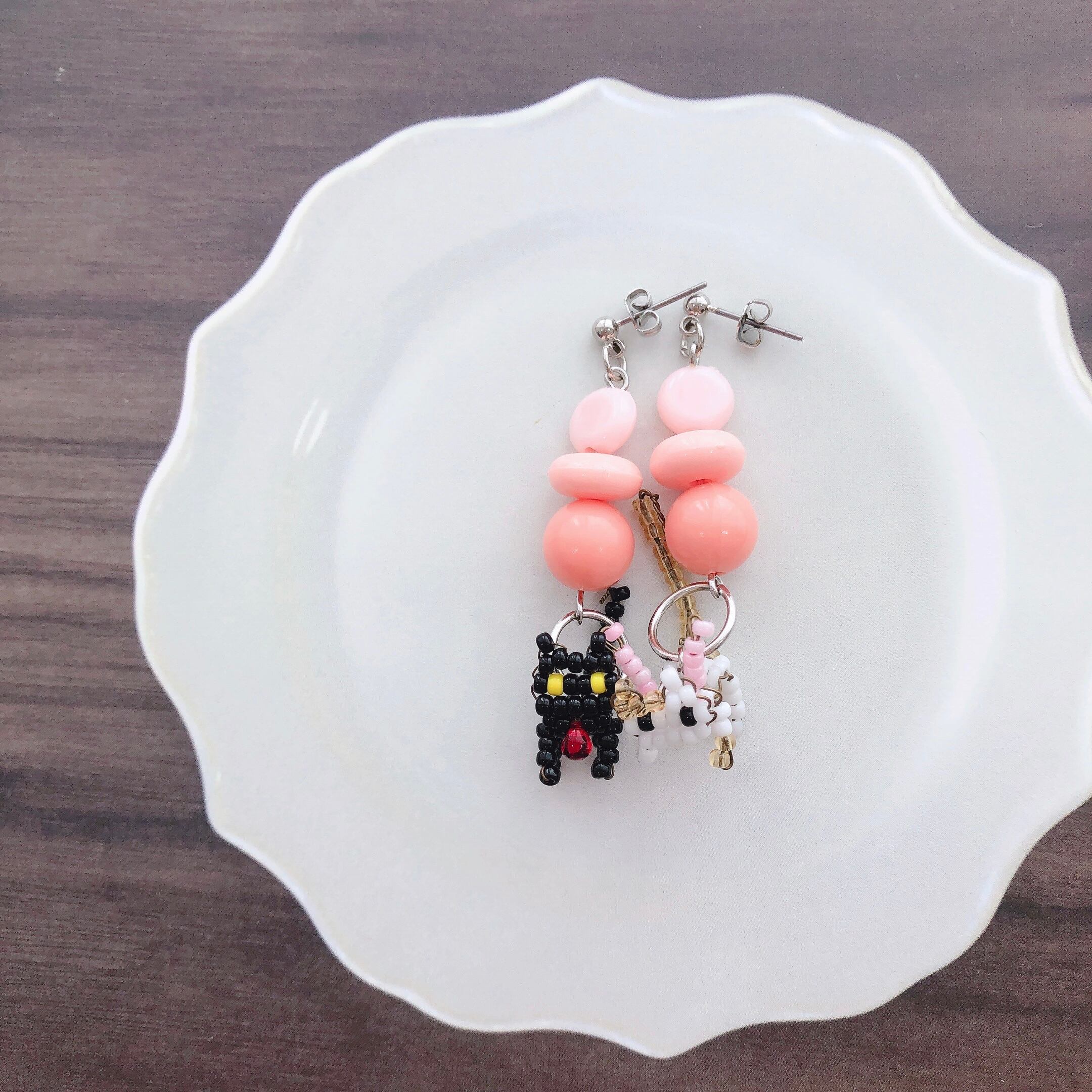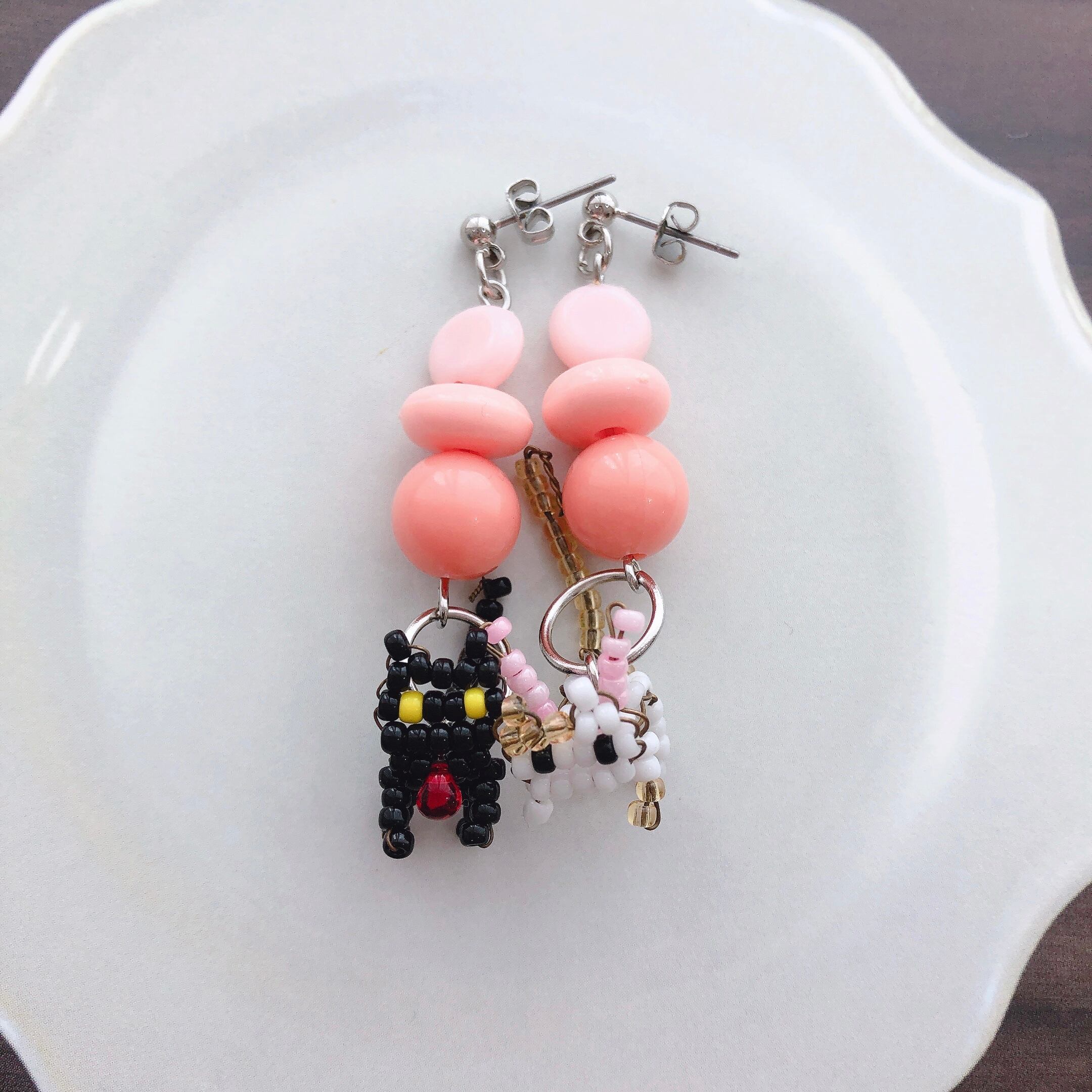 ピアス イヤリング 昭和レトロ レトロポップ アンティーク ヴィンテージ アシンメトリー 黒猫 三毛猫 白猫 鈴 りぼん ビーズ
